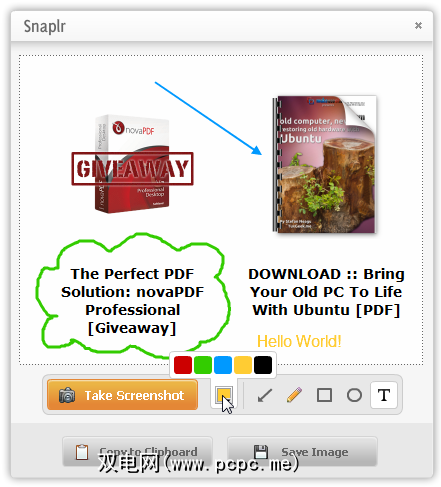 您现在可以使用Snaplr有限但有用的注释工具来添加文本,绘制箭头或形状,或者只用画笔徒手画画。您可以从5种不同的颜色中选择注释。