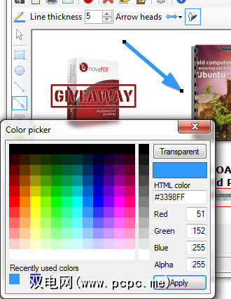 与Snaplr相对,您可以在此处选择所需的任何颜色作为注释,也可以使其透明。甚至会向您显示最近使用的颜色。