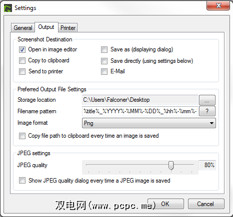 您还可以控制某些输出选项。取而代之,您可以将屏幕截图自动复制到剪贴板,而不是图像编辑器。或者,您可以将其发送到打印机或将其保存。您还可以控制输出格式和质量。