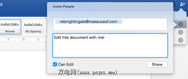 单击Word,Excel,PowerPoint或右上角的共享按钮OneNote(请阅读我们的OneNote简介),您可以选择通过姓名或电子邮件地址邀请他人。您还可以在这里选择授予同事哪些权限:可以编辑或只读。