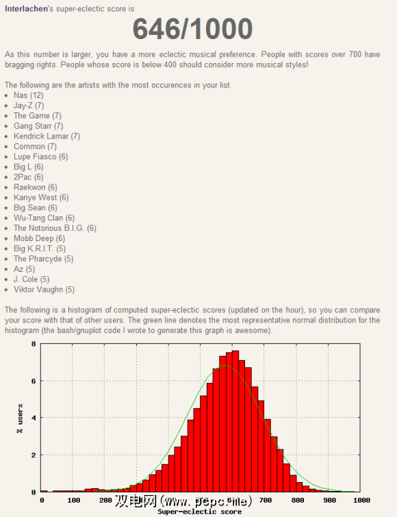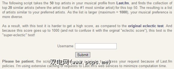要对您的Last.fm个人资料或其他任何人的综合得分进行排名,所需要做的就是输入用户名并提交表单。该网站将为您完成剩下的工作。