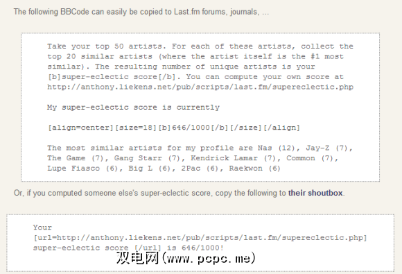 页面的下方是两组BBCode,您可以将结果嵌入到Last .fm个人资料,论坛,博客或其他地方。