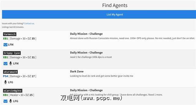 最后,您可以尝试 TheDivisionLFG.org 。与.com非常相似,但布局略有不同。如果您找不到在TheDivisionLFG.com上想要做的事情的小组,则可以给该网站做个镜头,看看可以找到谁。