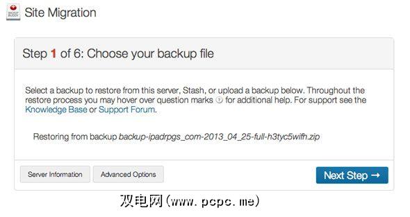 此时,该过程基本上与Duplicator相同;您可以选择手动模式,该模式实际上会为您提供类似的“ importbuddy.php"和备份文件,然后通过FTP下载并上传到新站点,或者,如果您设法使FTP能够正常工作,则可以在旧版本内完成所有操作WordPress安装在此过程中,您输入数据库信息,其他一切都为您完成。最后一步,将删除安装文件,并介绍一些常见问题及其解决方案。