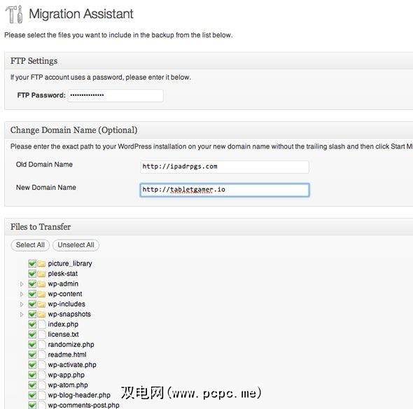 安装了新的WordPress,并且还添加了WordPressMove插件,我回头开始从旧站点开始传输过程。键入ftp密码,新域名并开始迁移。