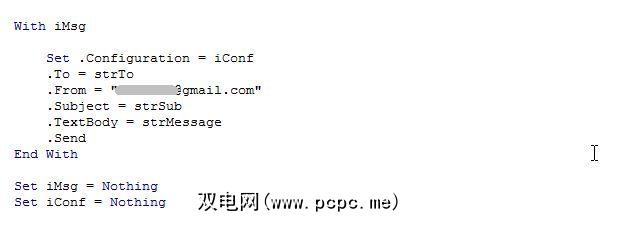 将以下代码复制并粘贴到该新模块中。这是一个子程序,基本上将使用Windows的CDO通过您的Gmail帐户触发电子邮件。要对其进行测试,请使用下面的代码,并用您自己的电子邮件地址和帐户信息替换。