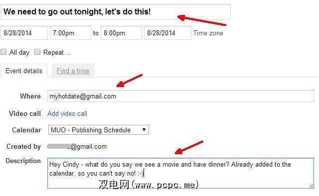 使“在哪里处理"成为可能。将主题设为“标题"。最后,将正文作为“说明"。看起来很奇怪?别担心,这是您做过的最酷的事情。创建完食谱后,打开Google日历并创建一个新活动。就像编写电子邮件一样对待新事件形式。