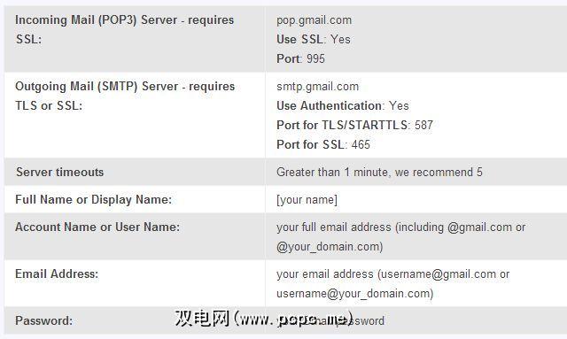 例如,对于Gmail,您需要知道SMTP服务器设置,您可以在Gmail中找到它,单击设置,转发和POP / IMAP ,然后单击配置说明。单击“我要启用POP",然后单击“其他"。