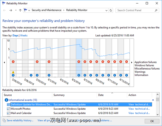只要触发这些事件之一,可靠性监视器就会记录有关哪些内容的详细信息只是发生了-日期和时间,所涉及的应用程序,它发生了什么样的故障等等-以及这些记录会保留几个月。
