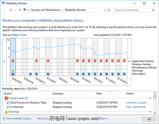 关于可靠性监视器的第一件事是,它从Windows事件管理器中提取了所有信息。 Windows事件的确切含义是:您可能想知道的系统上发生的事情。
