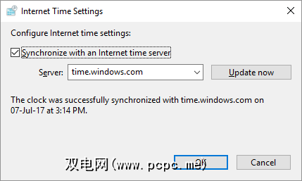 在日期和时间下,单击设置时间和日期,这将打开另一个窗口。切换到 Internet时间标签,点击更改设置,现在您可以添加选择的 Internet时间服务器,系统将使用它同步时间。