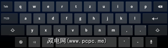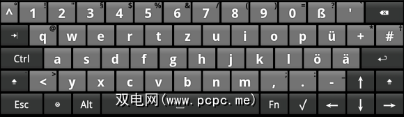 下面的屏幕截图显示了默认的Android 3.x键盘。请注意,这是德语键盘,即QWERTZ变体。