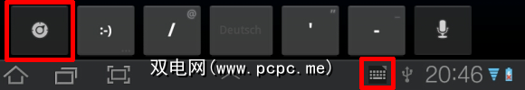 您可以通过单击键盘本身左下方区域中的工具按钮来访问当前键盘的设置。在上面的示例中,它是左下角的键。如果要切换到其他键盘布局,请单击Android任务栏右下角的键盘符号,以获取已安装替代键盘的列表。