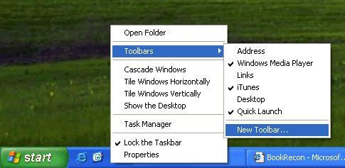 由于已从桌面上删除了所有内容,因此您可能会错过某些系统快捷方式,例如“我的电脑"或“我的"文件。也许您已将它们添加到“快速启动"栏中,但是还有另一种快速访问它们的方法。同样,任务栏提供了一种快速简便的解决方案:工具栏。右键单击任务栏,从菜单中选择>工具栏,然后在>桌面前打上复选标记。