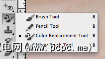 使用Photoshop更改眼睛颜色有几种不同的做法。在我看来,使用颜色替换工具最容易实现这一目标。可以在“画笔工具"和“铅笔工具"下找到。