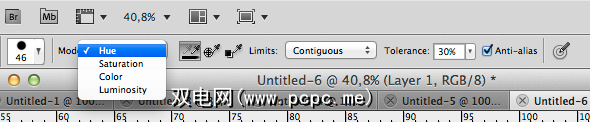 在工具栏中,将模式更改为色调更改(如果尚未更改)。在这里无法进行颜色替换。