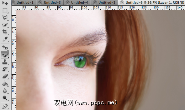 在本文中,我们将仅关注她的右眼。图像很大,因此您可能首先要裁剪。如果这样做,请确保至少保持脸部完整无缺;例如,我们将需要脸颊的肤色来改善眼睛周围的皮肤。