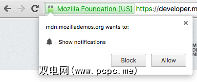 Notifications API的工作与此类似。它允许网站创建桌面通知。这些在社交媒体站点(例如Twitter)和即时消息传递应用程序(例如Slack)中大量使用。但是与Locations API一样,它们可能会分散使用网站的体验。更糟糕的是,如果您是那种本能地在弹出窗口中单击“确定"以摆脱它们的人,您可能会发现自己不希望看到弹出通知。