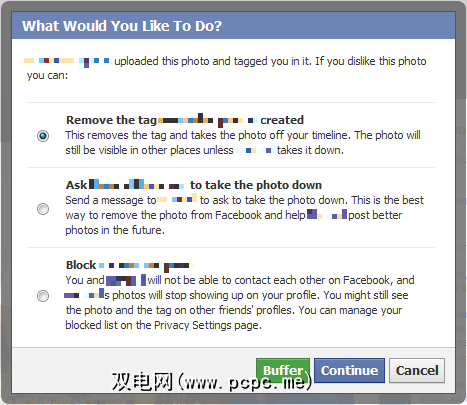 到从照片中删除标签(名称),打开相应的照片,将鼠标悬停在该照片上,单击底部的选项,然后选择报告/删除标签。选中删除由您的朋友创建的标签的选项,然后点击继续。在接下来的页面上,您可以要求删除标签,删除照片,甚至可以屏蔽您的朋友。在做出决定之前,请仔细阅读所有选项。