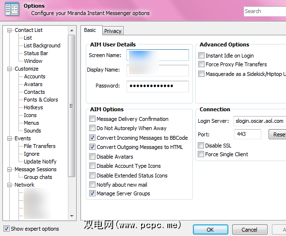 屏幕截图中,您可以自定义很多选项。虽然它无法将您与Facebook Chat甚至Skype本地连接,但您可以从其官方网站下载众多插件之一来实现。总体来说,Miranda具有非常好的功能和附加组件,而且非常小巧。