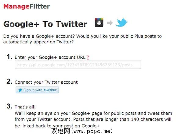 如果您不想考虑将Google+帖子发送到哪个机器人,可以通过一种方法将所有Google+公开更新自动交叉发布到Twitter。