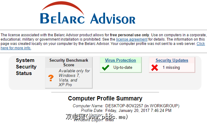 Belarc Advisor报告包括软件许可证列表,还包括软件版本和使用情况,以及有关系统的无数其他详细信息