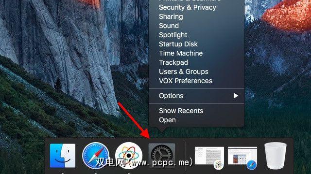 3。 。右键单击实用程序的扩展坞图标,然后在上下文菜单中找到所有排列在整齐的字母列表中的部分。如果要在“系统偏好设置"中查找特定部分,则从此列表中选择它是启动它的最快方法。