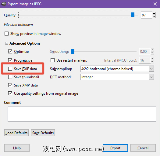 GIMP是一个免费的开源软件,可以轻松地从图像中剥离EXIF数据。甚至比上面的Windows 10方法还简单!