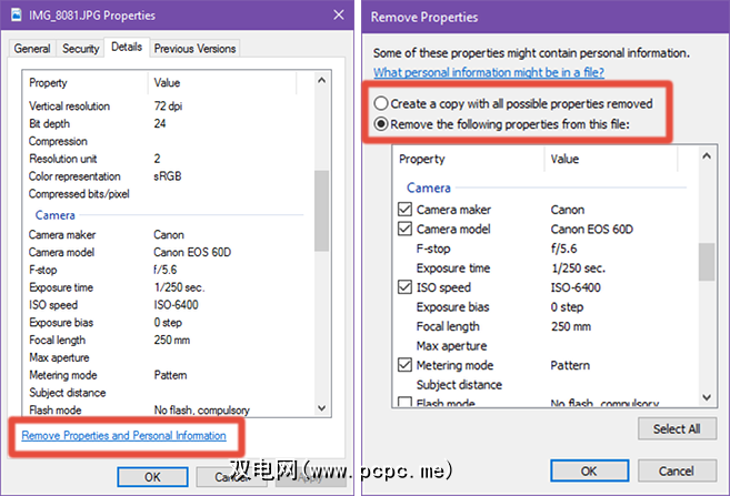 注意:一个缺点是Windows 10无法(或不允许您)删除所有EXIF数据。我不确定为什么微软会在Windows 10中保留此限制,但是如果您需要绝对限制所有EXIF数据,那么使用下面的其他两种方法之一可能会更好。