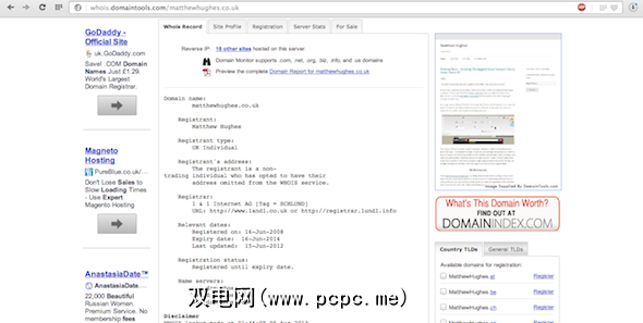 要查看您网站的Whois记录,请访问 http ://whois.sc/ <您的域>,其中<您的域>是您要查找的站点的地址。