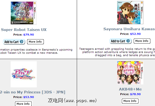 您可以从所有不同的游戏机(甚至是新发行的游戏机)中找到游戏。除了仅限日本的游戏外,Play-Asia甚至还出售美国的普通游戏,因此,如果您已经订购了一些进口游戏,则可以捆绑购买一些英语游戏。如果您真的想看一些有趣的东西,请查看他们的日语游戏指南部分,在这里您可以找到从未听说过的游戏指南,也许您将来可能还会想玩。最后要意识到的是,Play-Asia不仅出售游戏,而且还出售书籍,电子产品,音乐,玩具等。您可以在该网站上找到几乎所有您想要的东西。