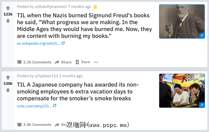 含义:当您了解了一些不新鲜但对您来说是新颖的信息时,请添加一个“ TIL"与全世界分享"。这几乎在Internet上的所有地方都使用过,但是起源于Reddit。实际上,TIL subreddit是学习时尚知识的最佳场所之一。例如: