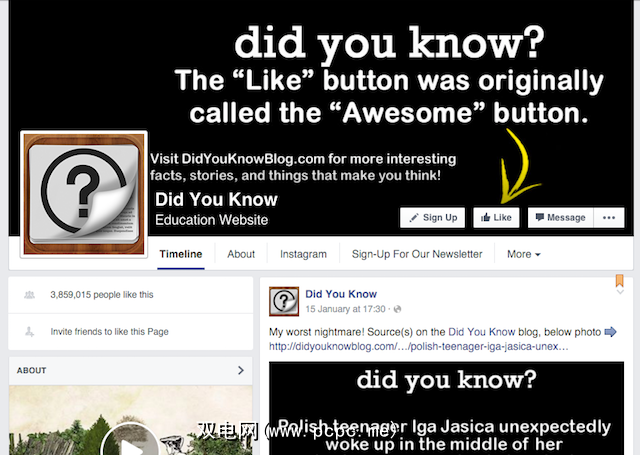 Facebook有几个“您知道吗"页面,这些页面会定期发布有趣的事实和观察结果。他们的祖父都是由DidYouKnowBlog运行的。为什么?因为与大多数竞争对手不同,DYK会麻烦引用资料来源,以便您可以进一步了解事实。尽管有时他们会弄错,但在信誉方面仍然有很大差异。