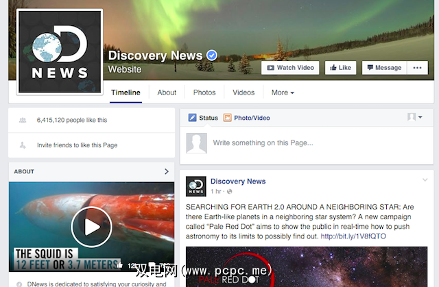 虽然它是Discovery网站主要新闻网站的链接,但该页面还包含有趣的事实,令人敬畏的图像和完整视频让您无需离开Facebook就可以观看。提示:如果您有空闲时间,请访问“发现新闻视频"页面。