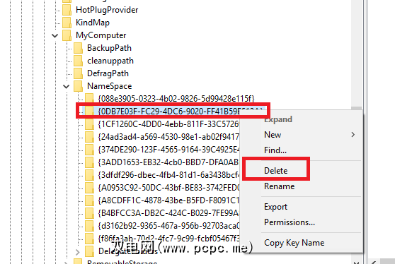 HKEY_LOCAL_MACHINE\SOFTWARE\Microsoft\Windows\CurrentVersion\Explorer\MyComputer\NameSpace
