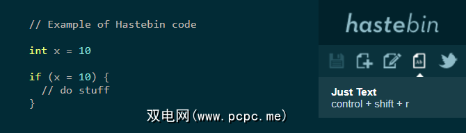 此外,右上角的该栏上还有一个 New 按钮,您可以按一下该按钮立即开始新的粘贴。查看粘贴时,复制并编辑按钮可让您从原始内容开始进行更改。而且,您可以点击 Just Text (纯文本),以在单独的页面上显示原始文本,这对于获取完整副本非常有用。
