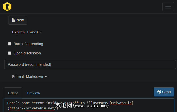 您可能会假设所有粘贴站点都相同,但事实并非如此。 PrivateBin作为创建粘贴的注重隐私的场所而脱颖而出。使用顶部的 Format 格式选择纯文本,源代码或 Markdown 。然后,您可以在编辑器中输入文本。