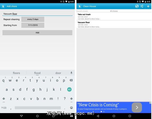您不必挑选专用的应用程序做家务。如果您已经在使用待办事项列表应用程序来保持生活井井有条,那么只需将杂务添加到其余任务中就可以了。 Evernote,Google Keep,Todoist和许多其他工具都可以很好地完成工作。如果需要帮助,这是Android的一些最佳选择的列表。