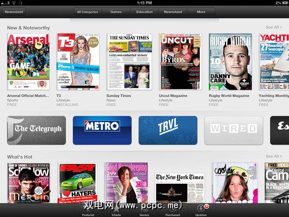 Newsstand iPad上有一个特殊的文件夹。通知编号将出现在文件夹上,以指示有多少个新问题可供阅读。只需轻按一下商店,即可直接链接到iTunes商店的杂志部分。