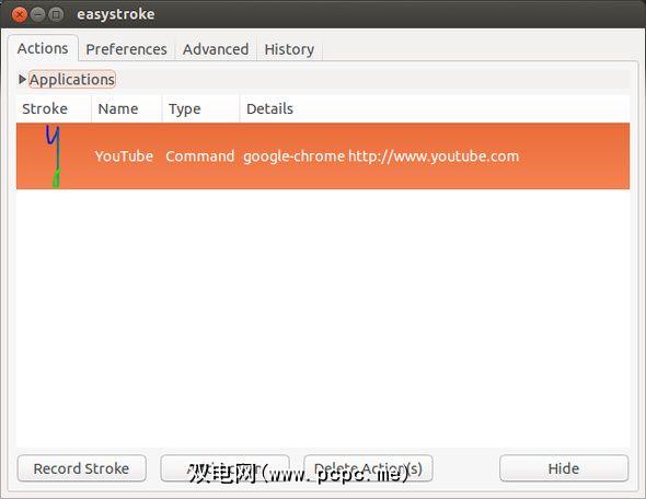 Easystroke Gesture Recognition is a highly-rated application with which you can create your own custom mouse gestures. The types of gestures which you can create are limited only by your imagination. As an example, you can create a gesture that opens up YouTube in your favorite browser after you form an imaginary “y” with your cursor. Once it’s made, Easystroke will watch your cursor and launch any actions that you’ve configured.