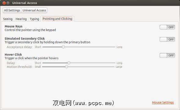 要在键盘上启用某些鼠标功能,请打开“系统设置",然后选择“通用访问"。在此处,选择“指向和单击"选项卡,然后启用“鼠标键"。这样,您就可以使用键盘来移动光标(虽然非常缓慢),并且可以通过按“ 5"键来单击鼠标左键。