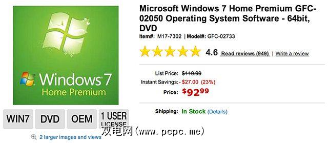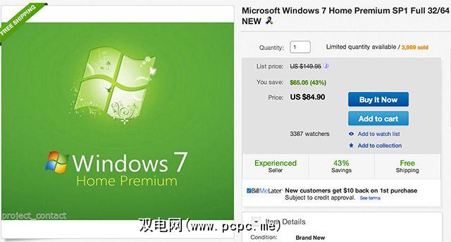 如果您需要的灵活性比Windows 7将提供OEM版本,您可以尝试从eBay等网站获取Windows 7的二手零售副本。在撰写本文时,我什至发现了一些Windows 3.1和Windows 95副本的拍卖。此外,一些专业卖家手头有Windows 7的新副本,这使得获取副本变得更加容易。