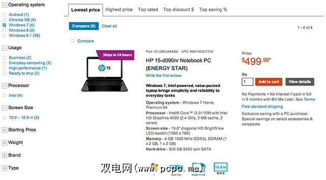 最后,如果您不能独立使用Windows 7,则可以尝试购买预装有Windows 7的新PC。有许多品牌和在线零售商可以让您购买符合特定条件的计算机。 ,包括安装了哪个操作系统。如果找到此选项,则只需检查您感兴趣的任何Windows 7版本。