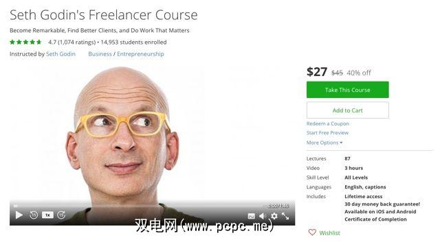 就课程质量而言,它已经招收了超过14,000名学生,并且获得了4.7星以上的评价1000条评论。基本上,您可以放心,其中充满了优质的内容。还有它的塞思·高丁(Seth Godin),他对这个问题一知二解。