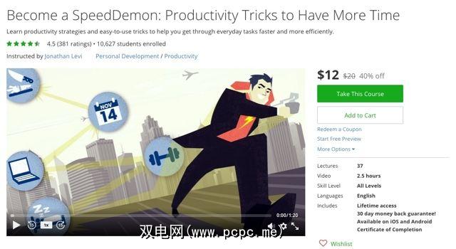 您将学到如何使任务自动化,保持身体健康,健康和不健康的多任务处理,以及很多其他好东西。参加本课程(或可能研究Udemy上的其他生产力选择之一),对于习惯于激励自己和完成工作至关重要。