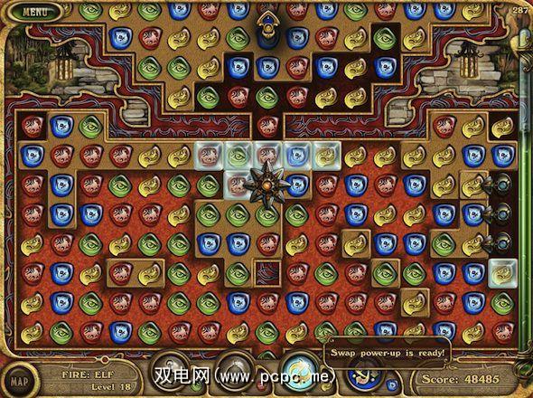 4个元素中最令人难忘的部分是主游戏,其中有一个非常简单的想法越来越困难和沮丧。目的是为您创建熔岩进入神社的路径。您可以通过将匹配的元素连接成一行并清除污垢来实现此目的。它会逐渐发展成泥土,石头和冰层阻塞路径,并通过添加箭头,黑桃和炸弹之类的工具来帮助您扫清道路,从而为您提供帮助。非常简单-只需将匹配的元素排成一行即可。但是,您最终会遇到麻烦,并且意识到您不能就此止步。您只需要完成这一步即可。