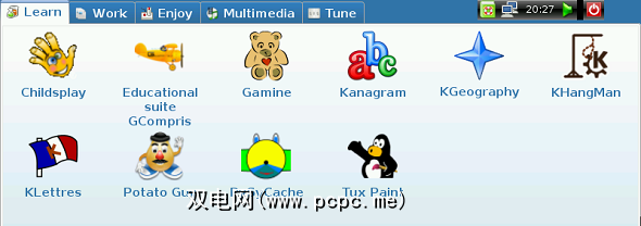 这是另一个基于Ubuntu的儿童友好发行版,但有所不同。扩展坞使孩子们可以快速访问教育性的Linux游戏,而完整的菜单则意味着您可以轻松浏览所有程序。