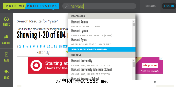 只需使用教授的名字进行搜索,或通过输入学校名称来查找您的学校。