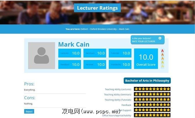 该网站专门为很多教师评分事物,包括城市,大学和讲师。讲师部分使学生可以通过评估每个教授的优缺点来对讲师进行评分。