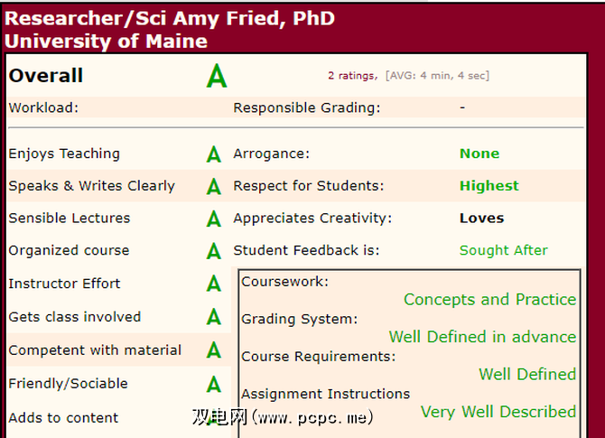 当您单击教授或老师的名字时,您会看到他们的整体素质,学生是否会再次从他们那里上课,以及他们的难度他们的班级。下面是以前的学生写的真实评语。